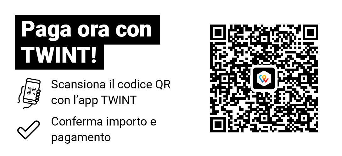 Pagamento in loco in contanti (contati) o con TWINT o in anticipo con TWINT